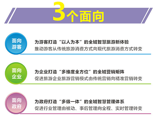 全域旅游宣传营销平台以实现推广全域旅游为目地,通过网络媒体矩阵一键发布,快读推广,形成以旅游线路、土特产、酒店、旅游租车、景区票务等为主的预定服务及旅游信息查询服务,同事提供营销活动策划服务,以此引入客流,为全域旅游的发展积累游客数量。