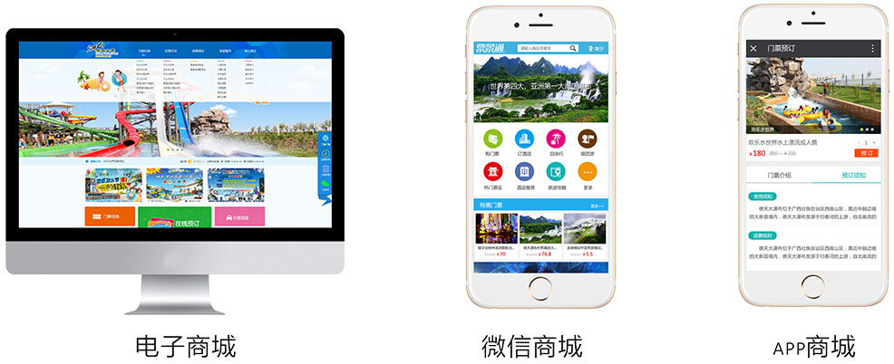 电子商务系统可以通过PC商城、微信商城、APP商城实现目的地旅游电子商务,可以根据目的地特点进行栏目设计与模板定制,实现全商品(美食特产、旅游线路、景区门户、住宿宾馆、旅游商品等)的预订与在线支付,推动当地经济发展。